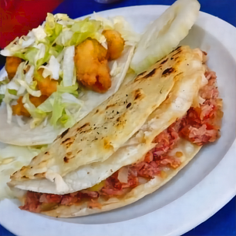 3 quesadillas grandes rellenas de camarones a la mexicana