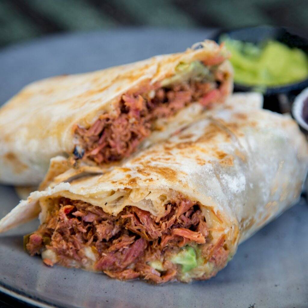 Totalmente fuera de este mundo. Ricas flautas doraditas rellenas de birria. Salsa, crema, cebolla y cilantro.