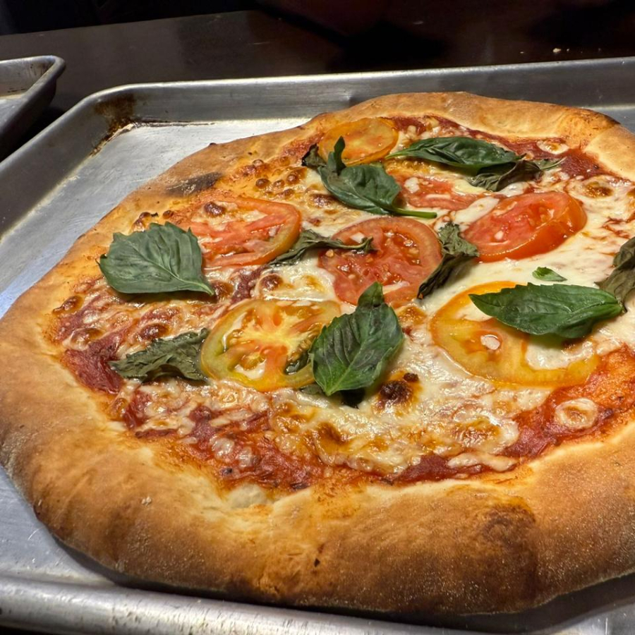 Salsa de tomate, queso mozarella, jitomate, albahaca.