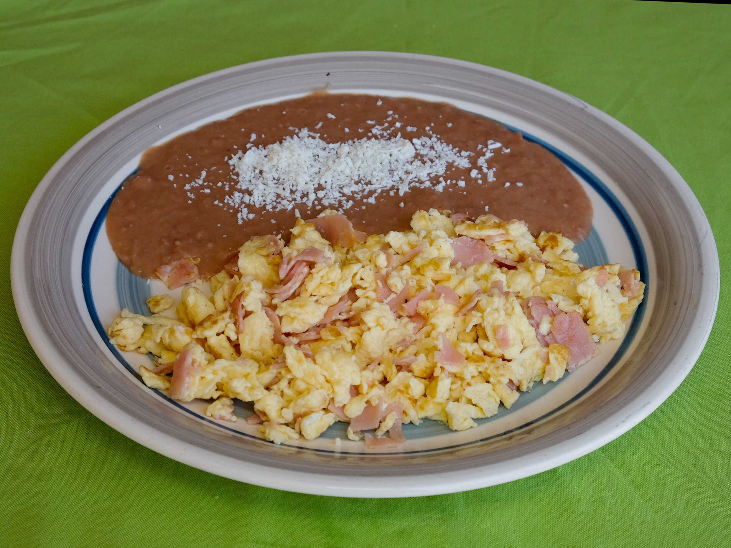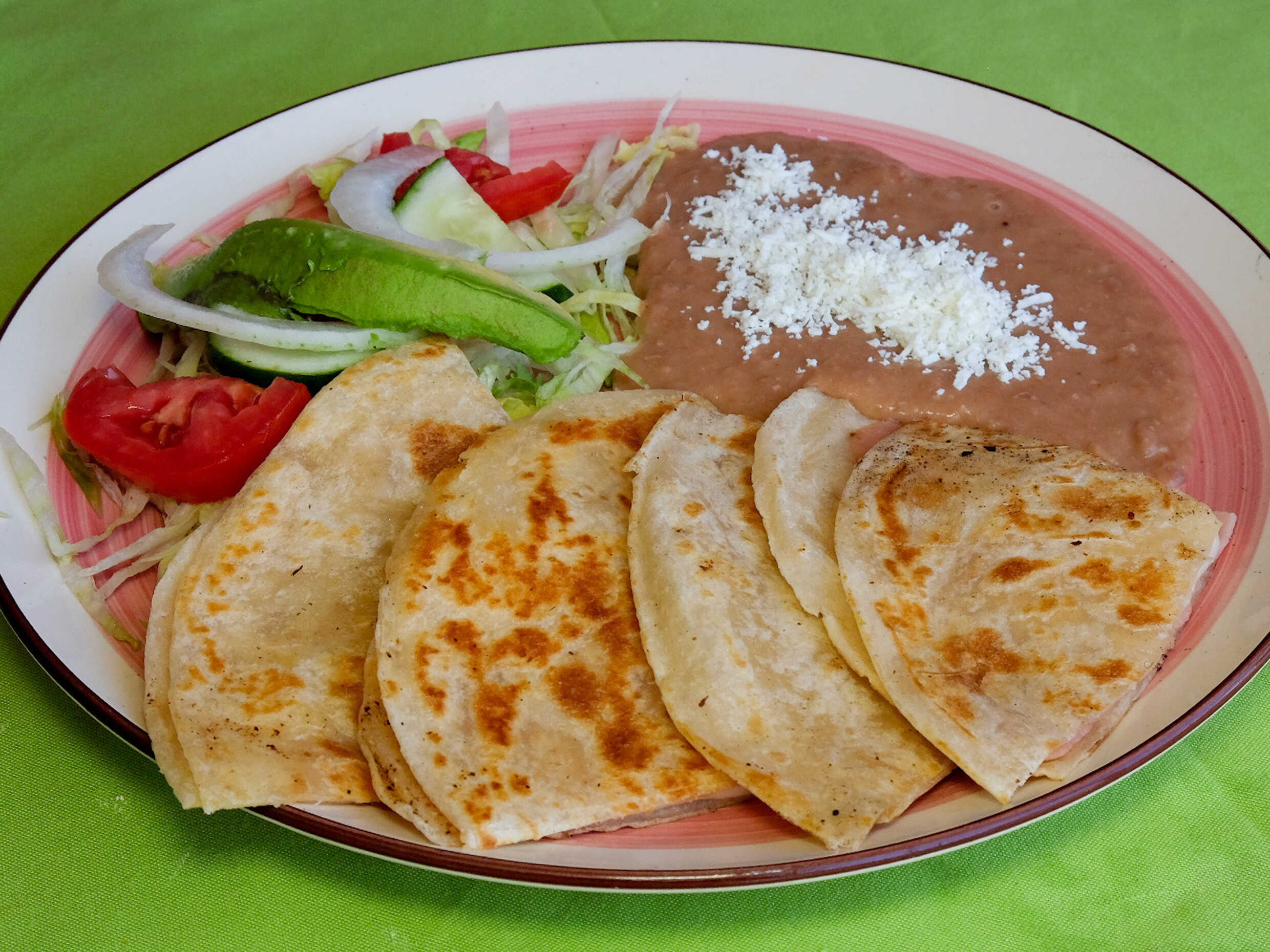 Acompañada de frijoles y ensalada