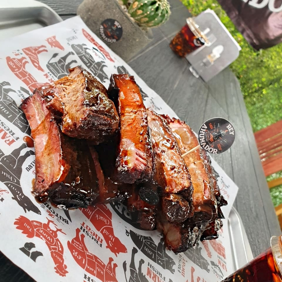 tiernas y jugosas costillas de cerdo ahumadas. con un toque de salsa bbq.