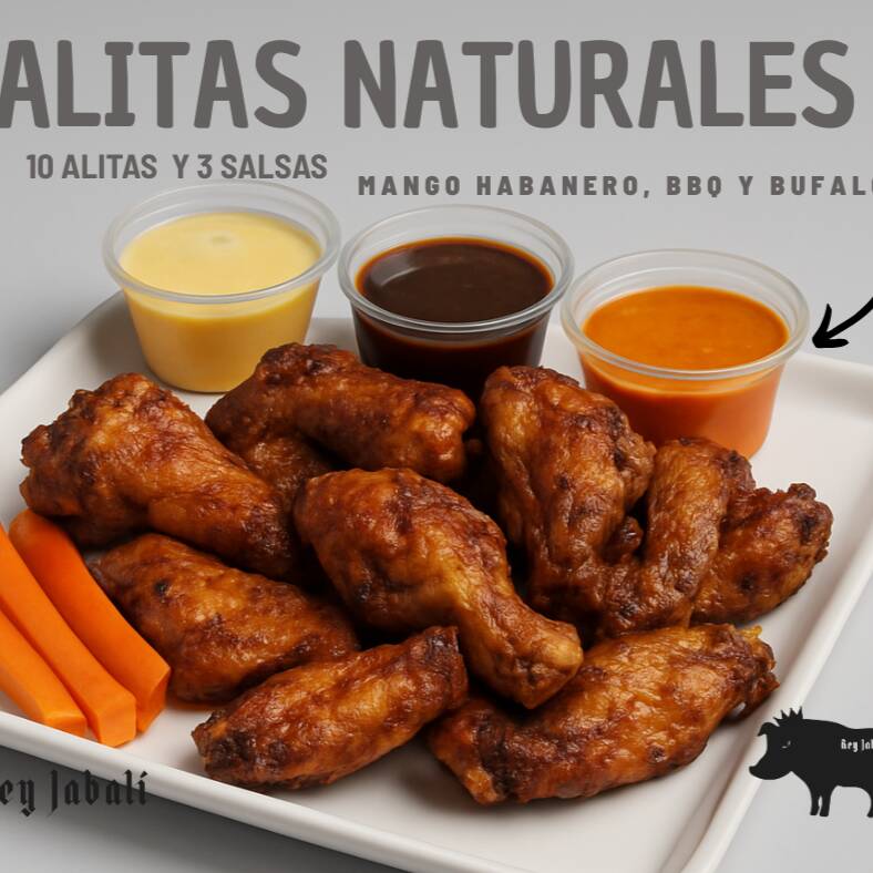 10 Alitas de pollo, sabores BBQ, Bufalo, Mango habanero.