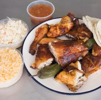 Arroz 16 oz*1 + Orden de Papas*1 + Ensalada de Col*1 + Salsa*1 + Tortillas*1 + Chiles Jalapeños*1 + 1 Pollo Ranchero (Tipo Asado)*1 + 1/2 Pollo Ranchero (Tipo Asado)*1