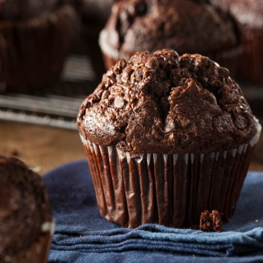 Grande y esponjoso muffin con trozos de chocolate, se sirve calentito. Big and fluffy muffin with chocolate chunks, served warm.