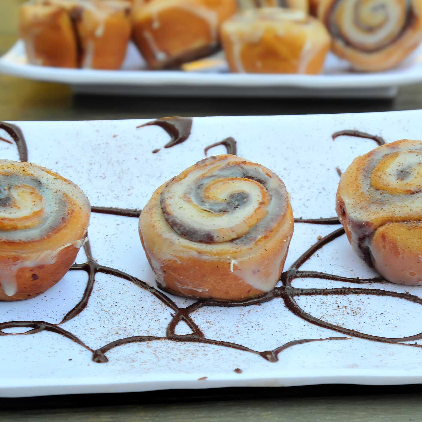 3 Piezas de mini roles de canela glaseados / 3 pieces of mini glazed cinnamon rolls.