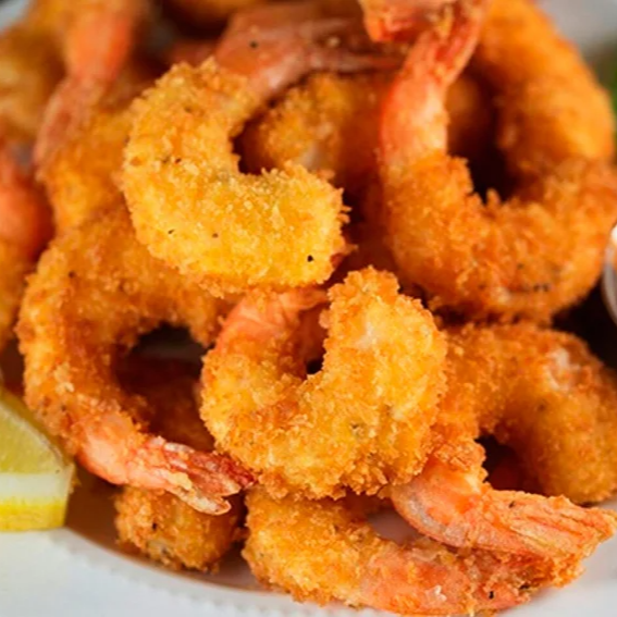 Deliciosos camarones empanizados con coco, acompañados con arroz ,ensalada, salsa mango habanero y pan con mantequilla