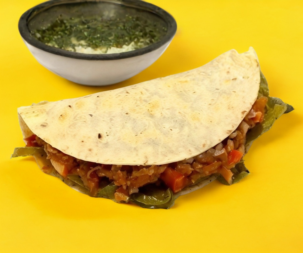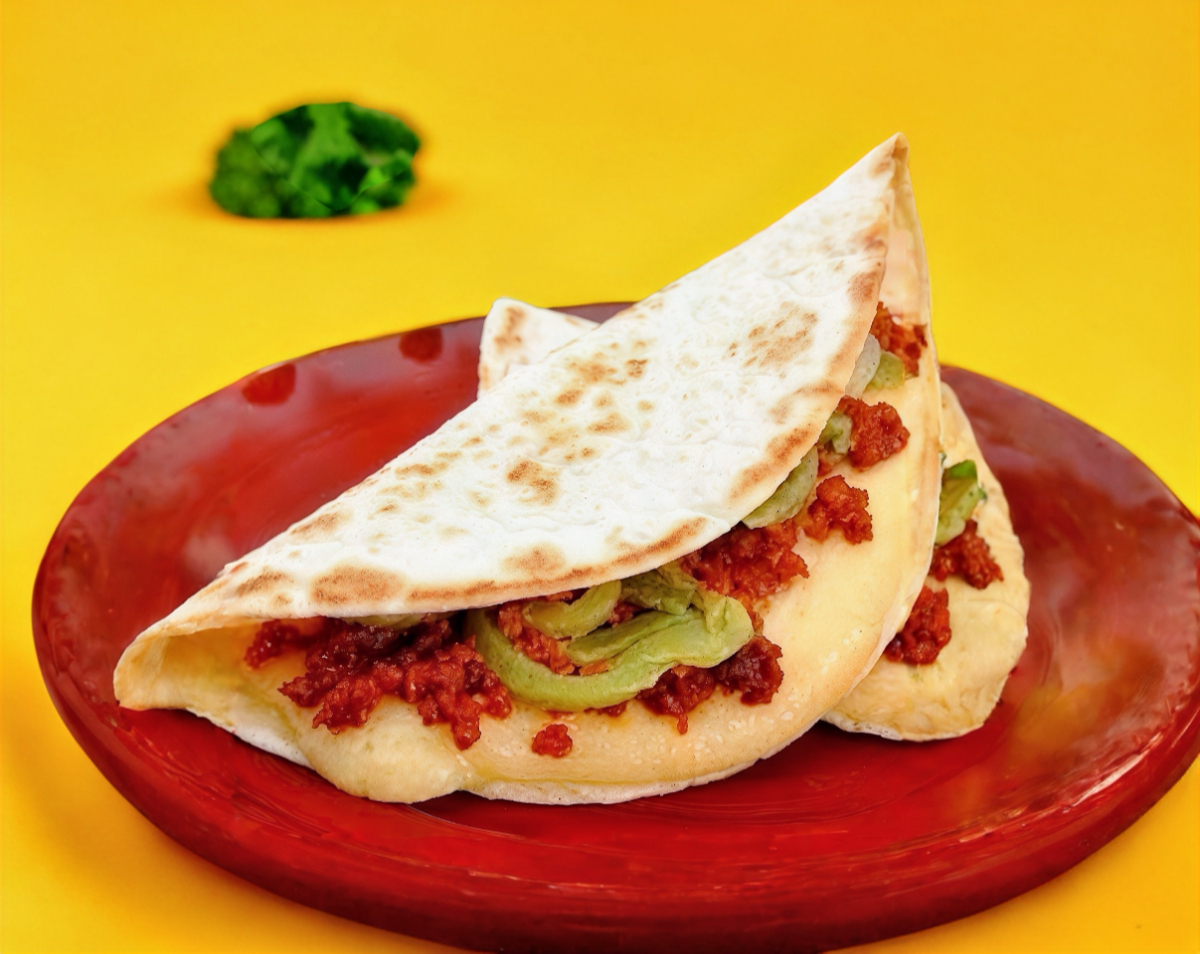 Quesadilla de maíz hecha a mano con chorizo jugoso y queso fundido. ¡Sabor casero garantizado!