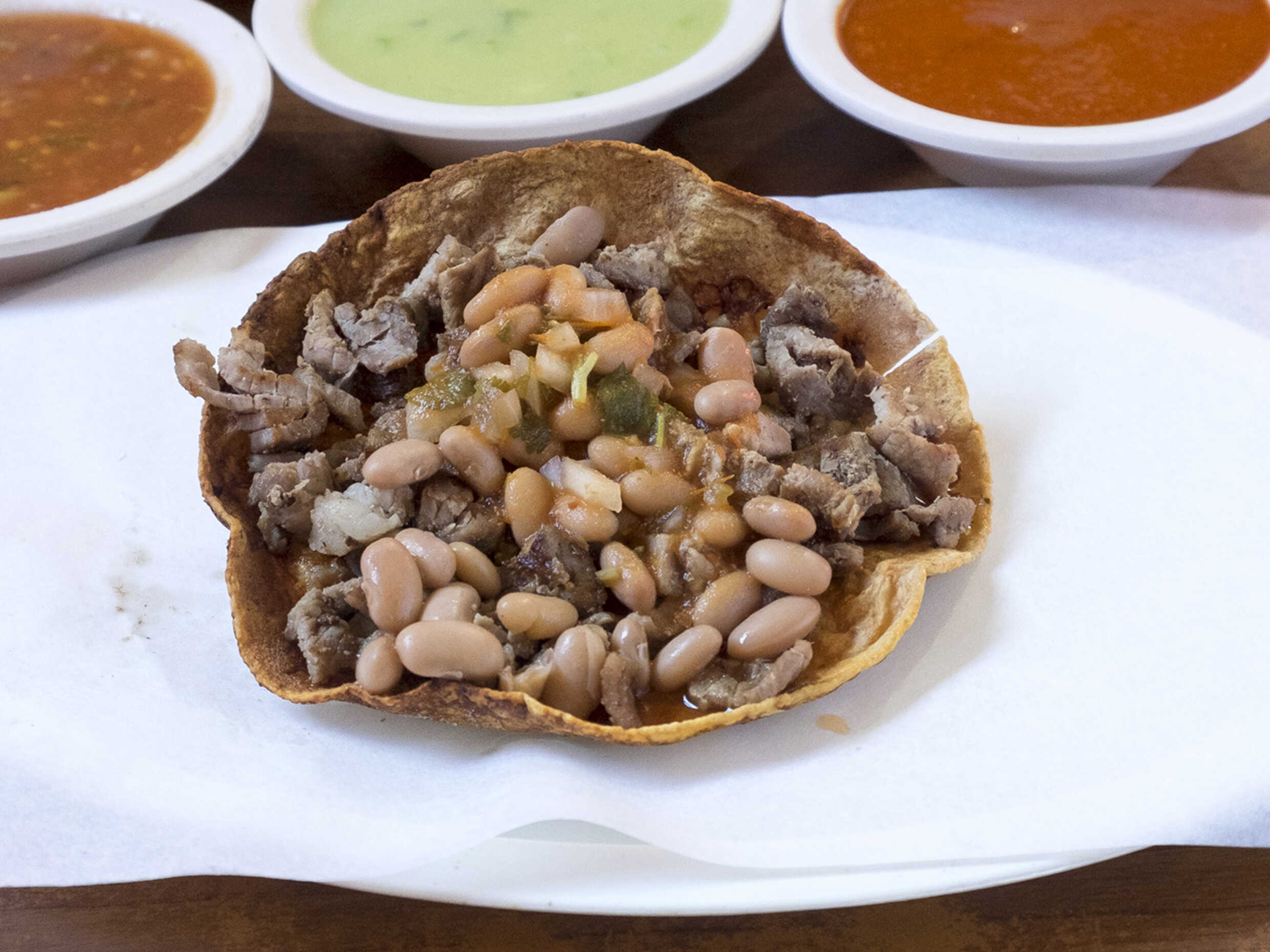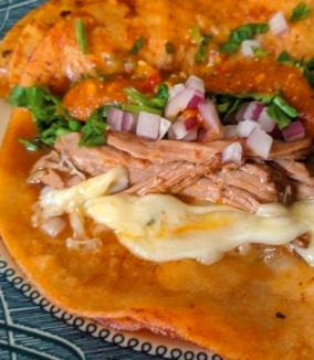 Tortilla crujiente, adobada jugosa y queso fundido. El clásico que siempre se antoja.