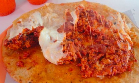 Tortilla de maíz hecha a mano, rellena de chorizo sazonado y queso fundido. Sabor auténtico en cada mordida.