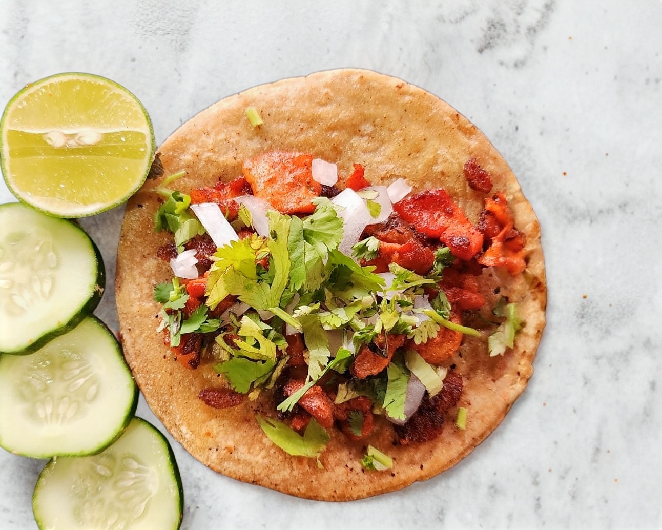 Agua fresca del día 1L Jamaica*1 + Tacos de Adobada*5