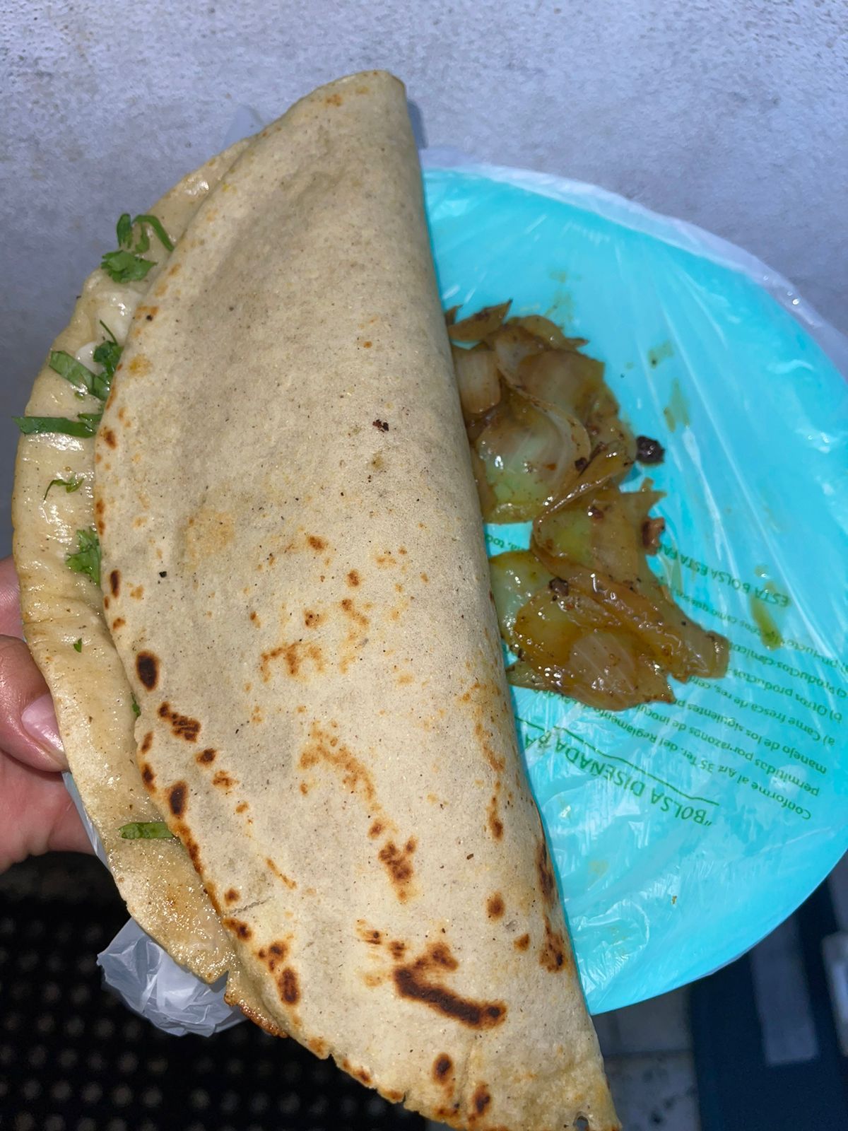 Tortilla grande de maíz.