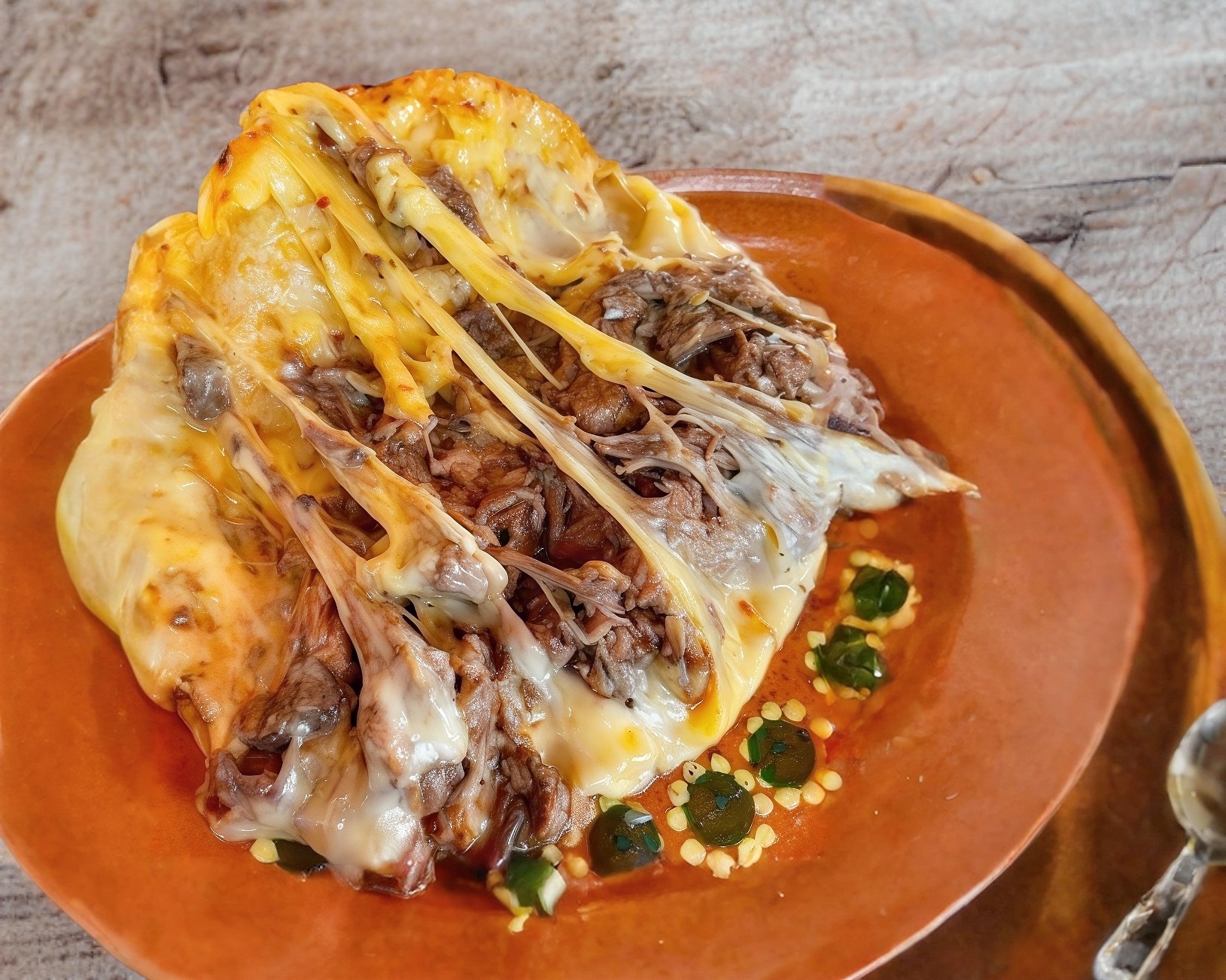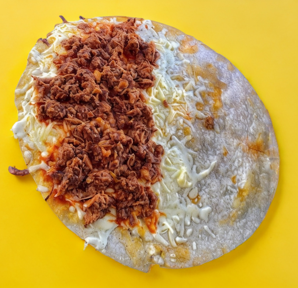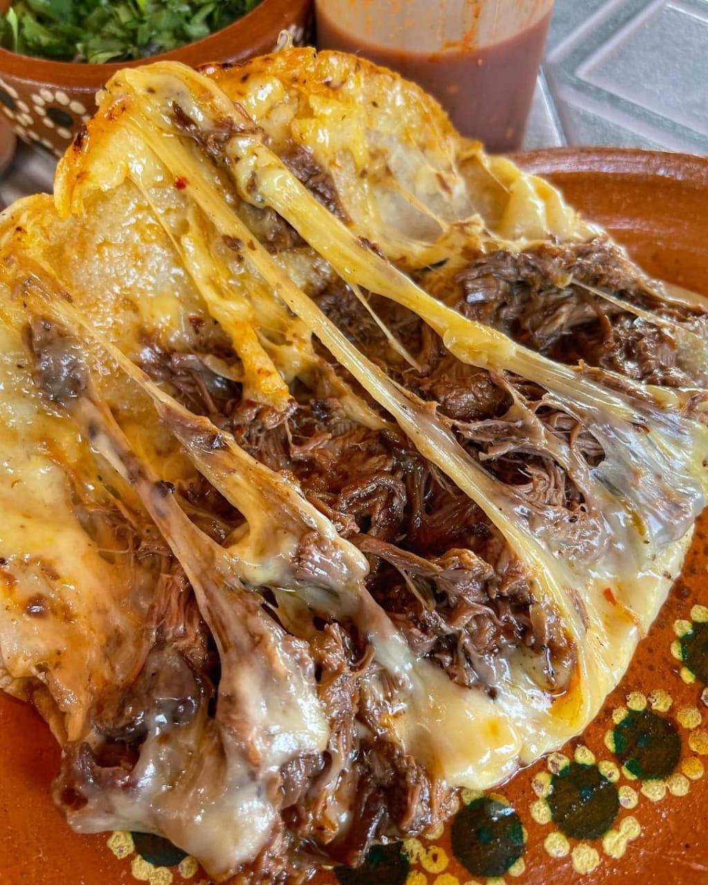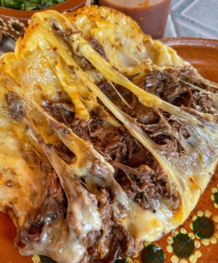 Quesadilla de Birria de Maíz incluye queso guaudua y birria
