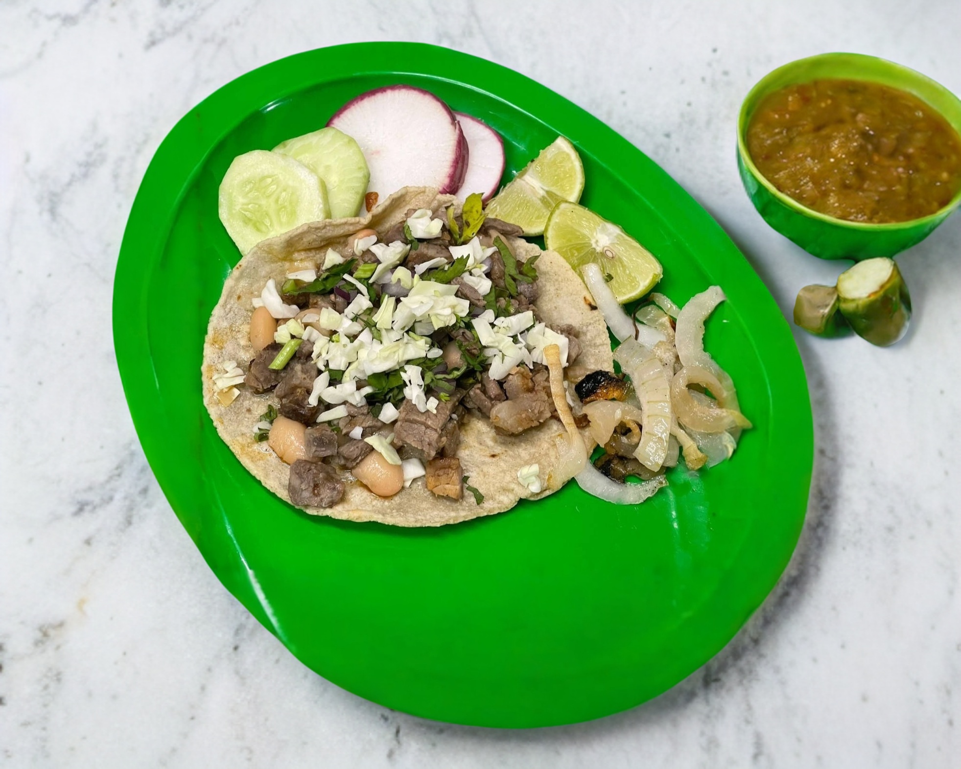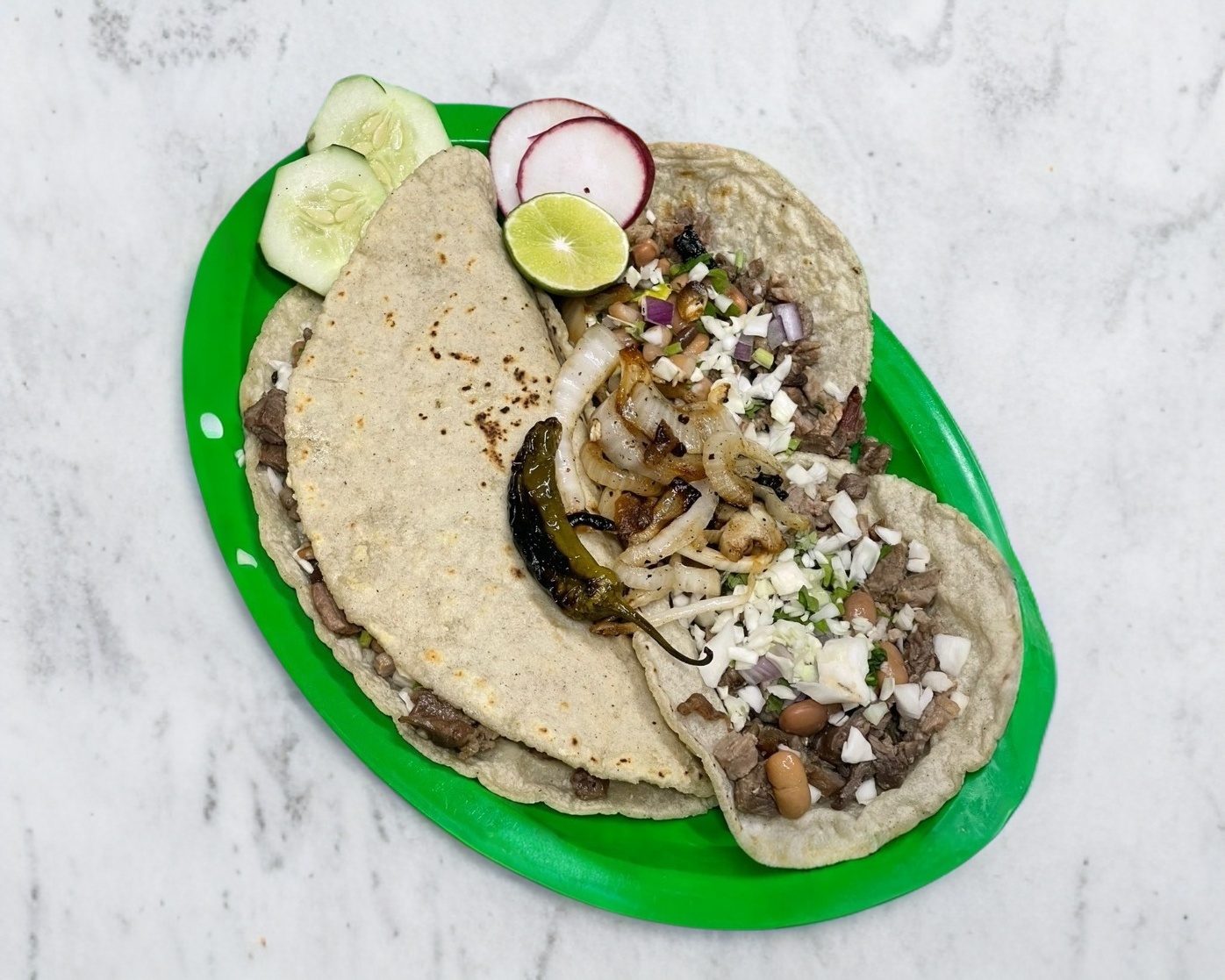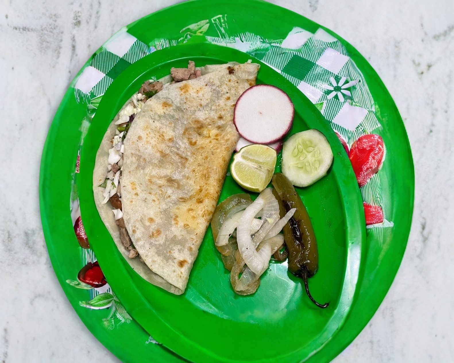 Quesadilla de harina o maiz y 2 tacos con carne a elegir!