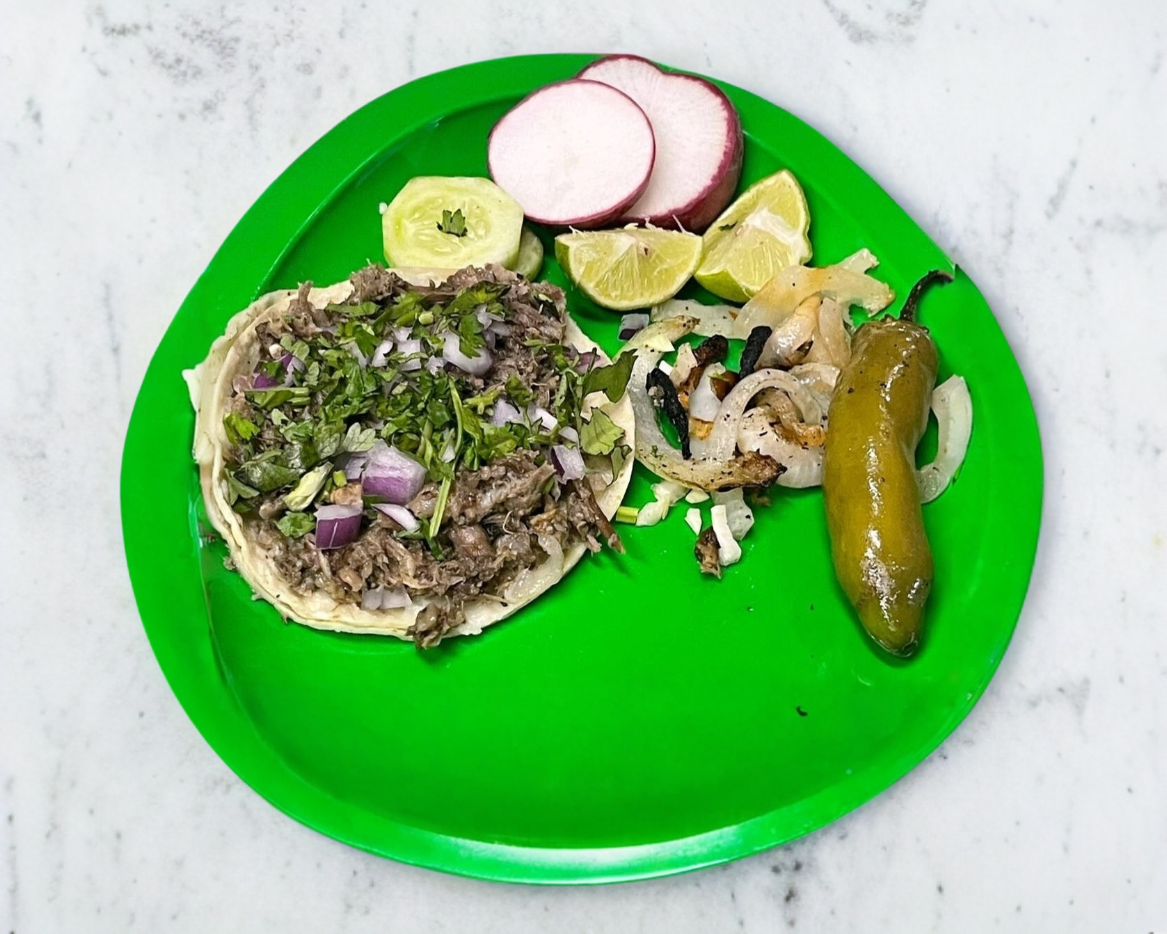 4 tacos con carne a elegir con 1 litro de agua del dia!