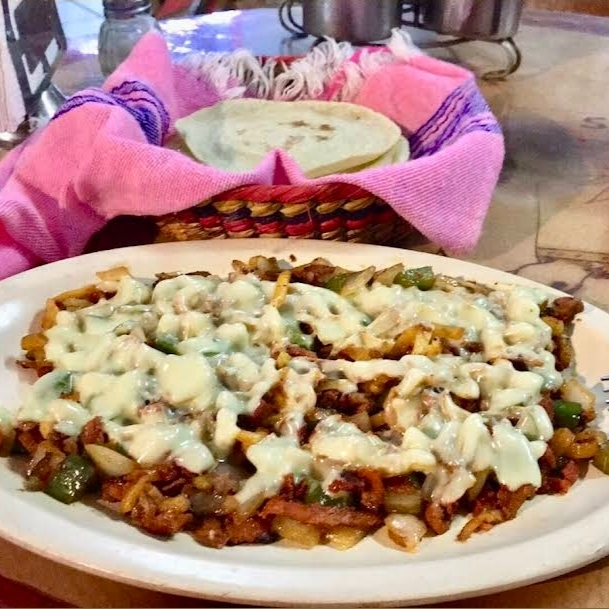 Contiene bistec, pastor, tocino, queso y 7 tortillas