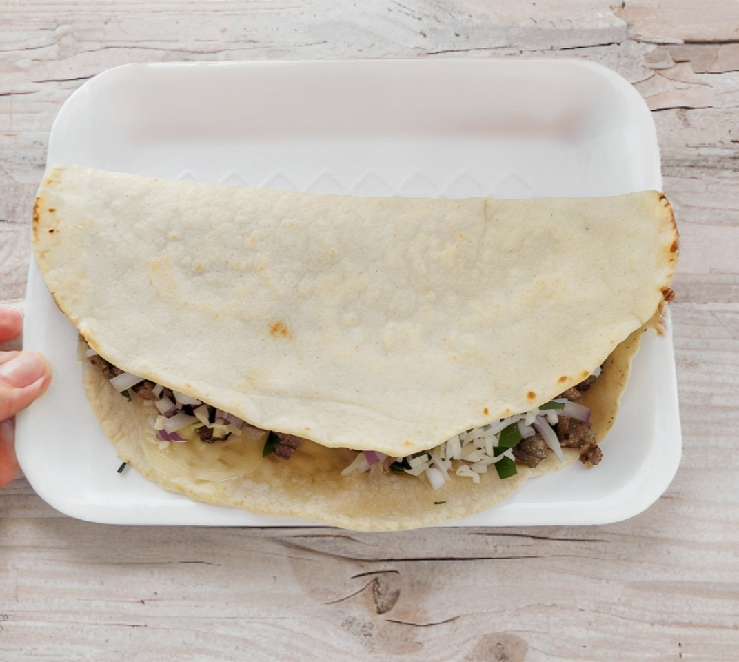 Quesadilla grande de bistec a la mexicana con tortilla de maíz