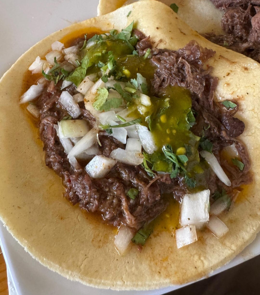 Carne de labio de res cocida lentamente hasta obtener una textura melosa y gran sabor.
