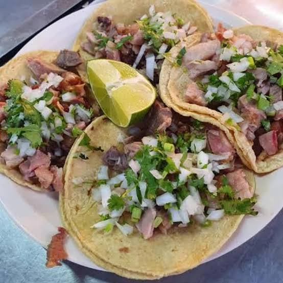 Corte selecto de paladar de res, picado finamente y servido con la guarnición clásica de la taquería.