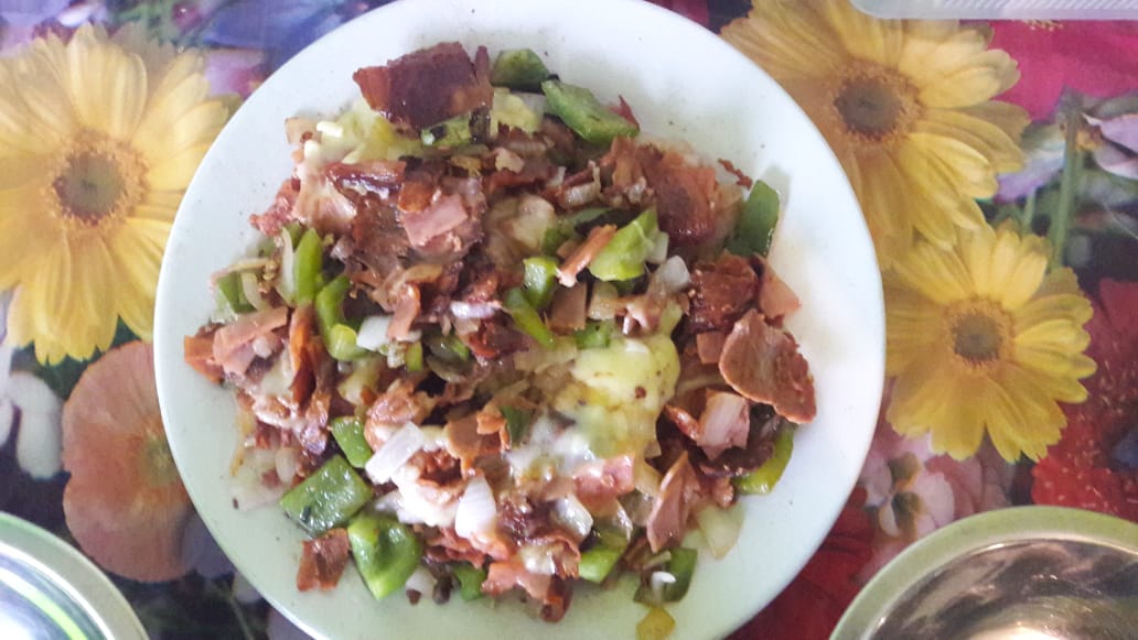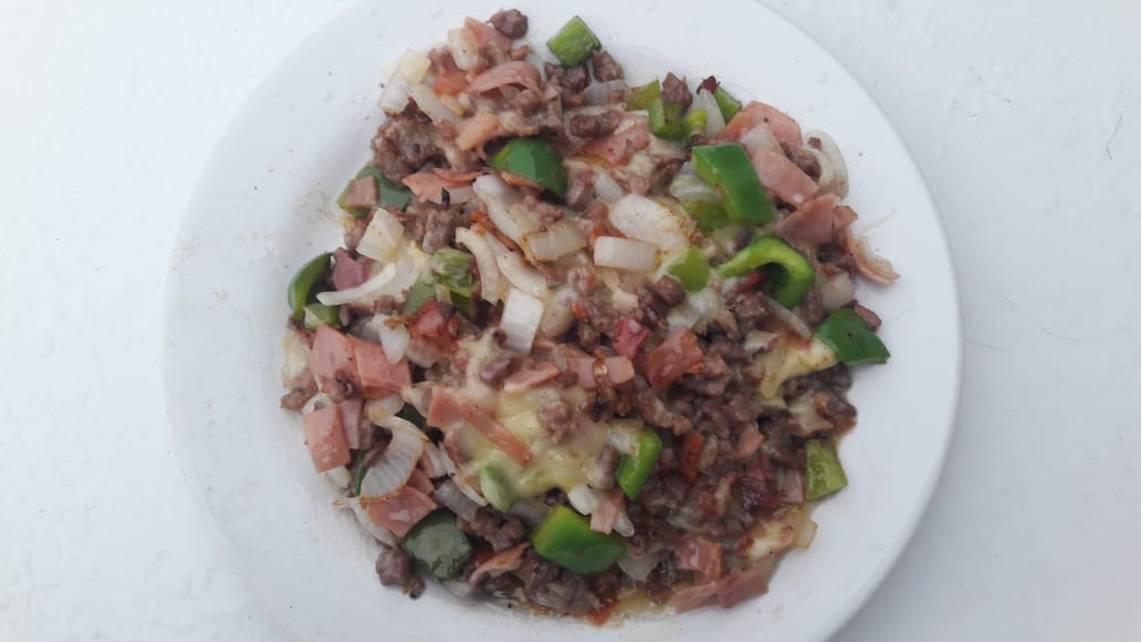 De todas las carnes, cebolla, morrón, tocino y tortillas.