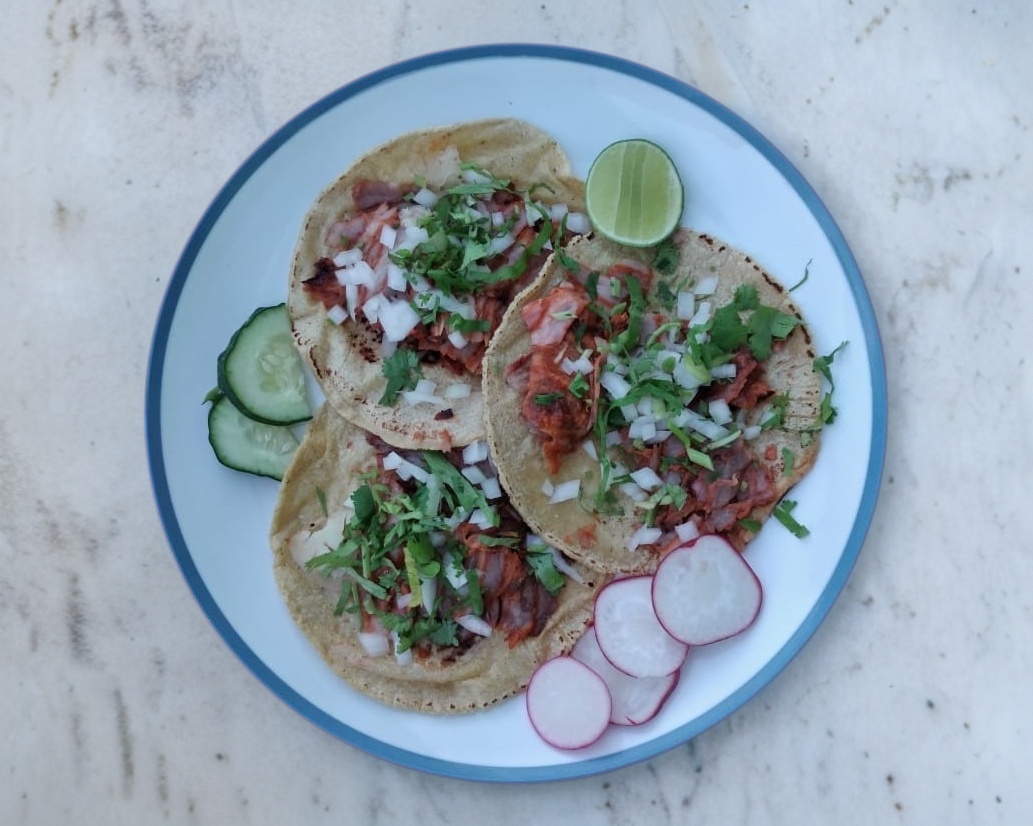 Pastor, asada, chorizo, y chuleta. Tortillas y salsas aparte