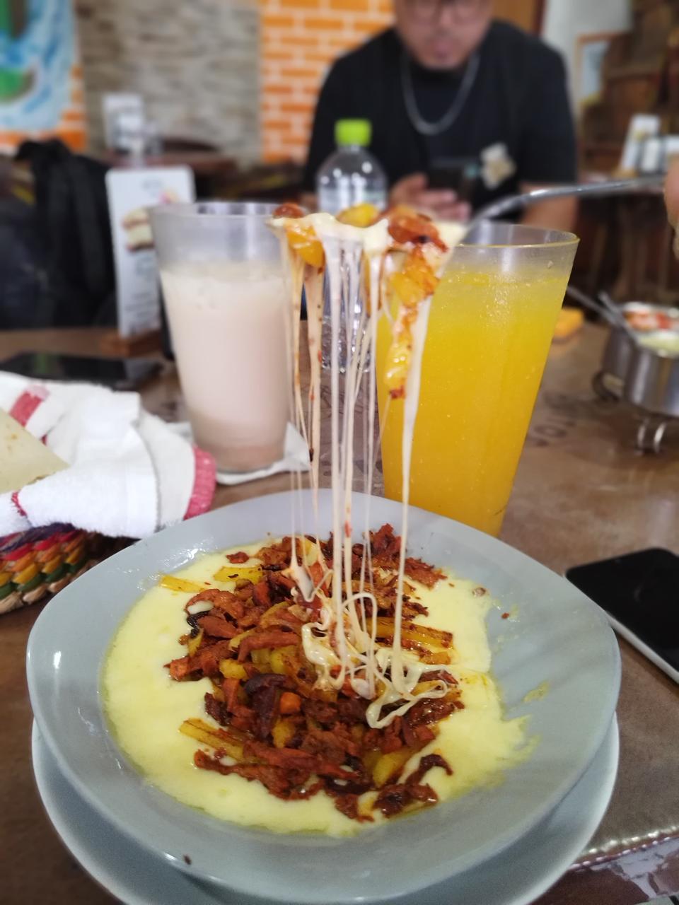 Pimiento morrón, cebolla, chorizo, tocino y queso incluye tortillas