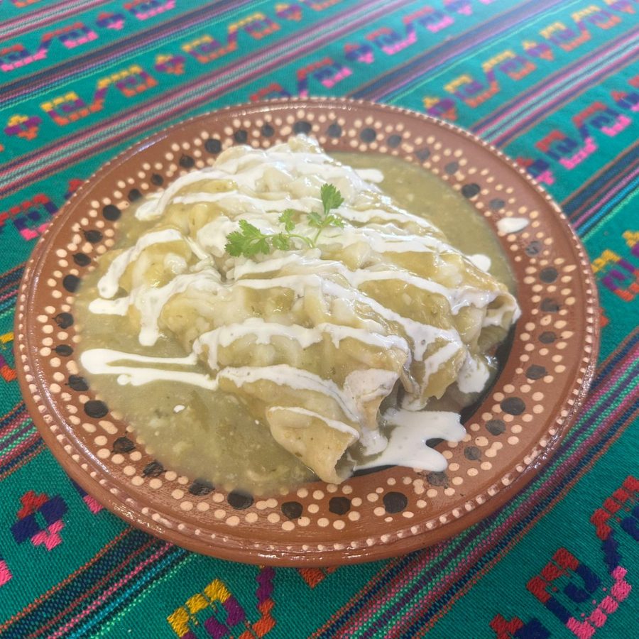 Orden de 4 enchiladas bañadas en salsa verde, con pollo gratinadas