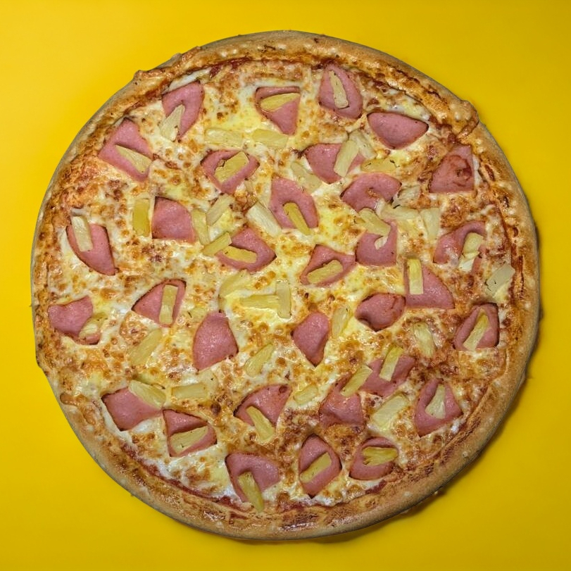 Pizza grande con piña y jamon
