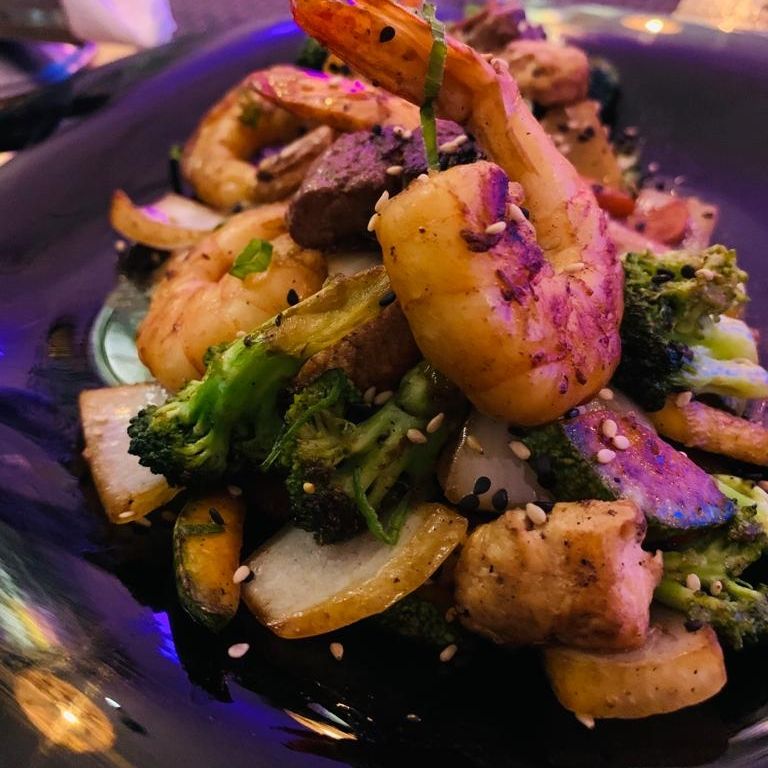 Vegetales mixtos la plancha con soya, cebollín, ajonjolí y proteína a elegir