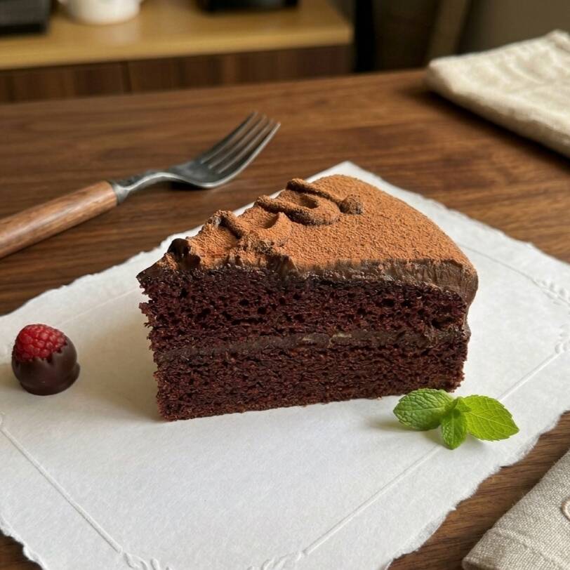 Exquisito pastel de chocolate amargo y cocoa , hecho en casa.