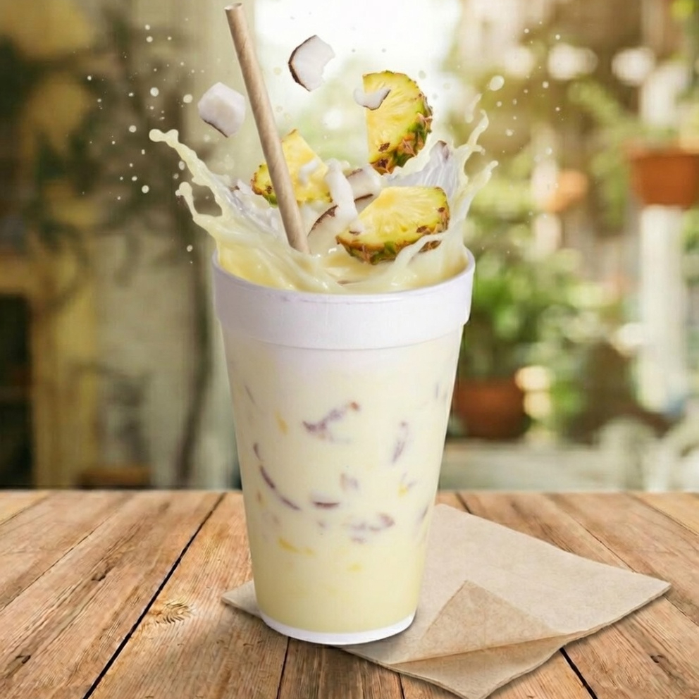 Milanesa, salchicha, jamón, queso, queso amarillo y piña, más grande.