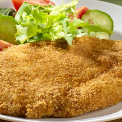 Rica MIlanesa preprada Al momento, acompañada de su Rica guarnicion, ensalada que esta compuesta de lechuga, jitomate, cebolla, agucate, rebanada de teleras