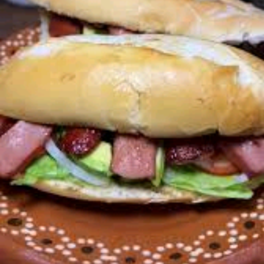 Telera mayonesa salchicha aderezo jitomate cebolla chile aguacate