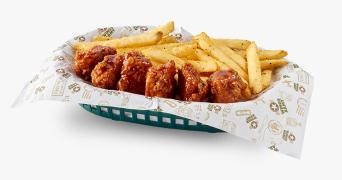 440 gramos de Suaves trocitos de pechuga de pollo empanizados, dorados a la perfección y bañados en cualquiera de nuestras salsas.