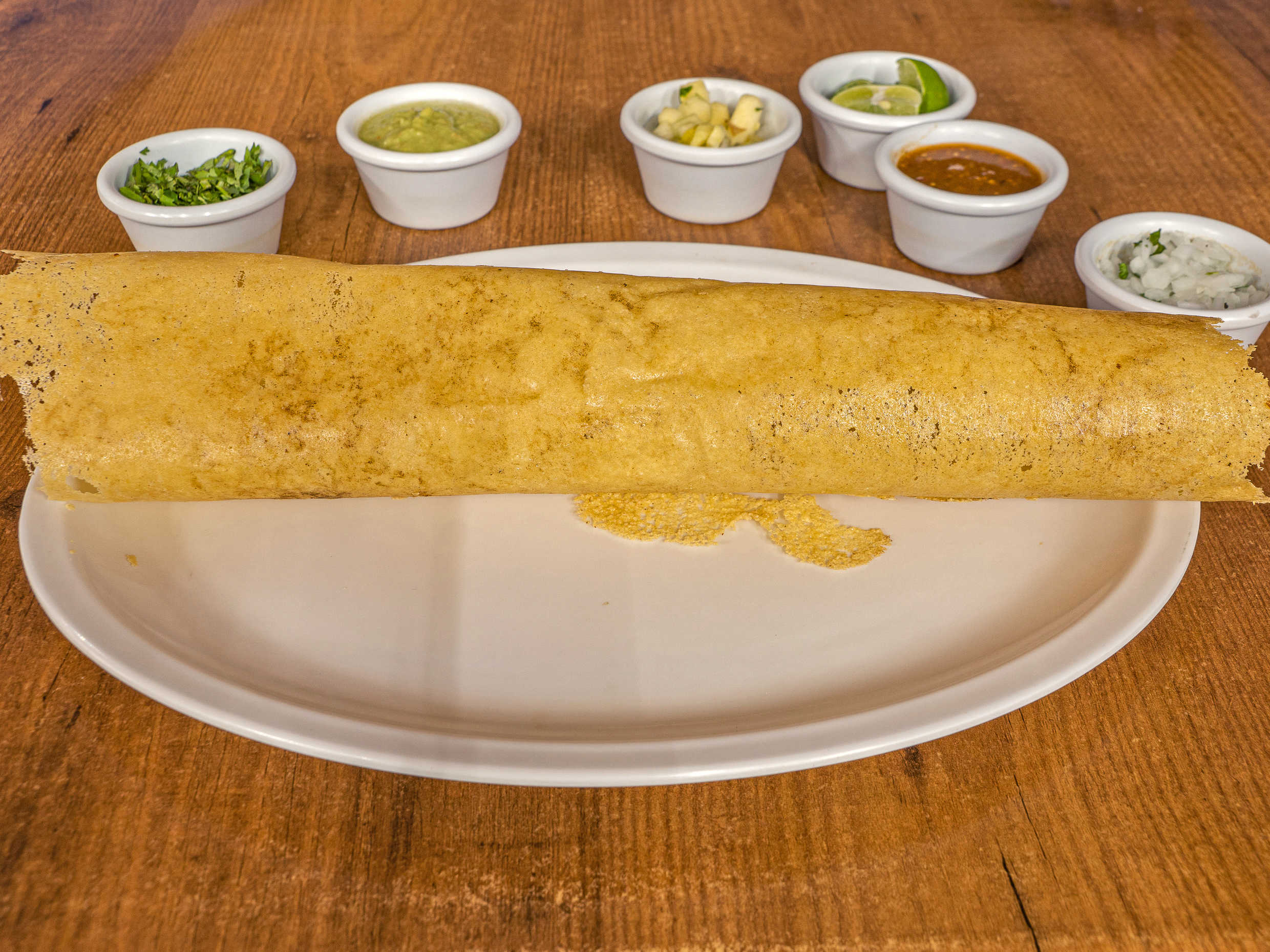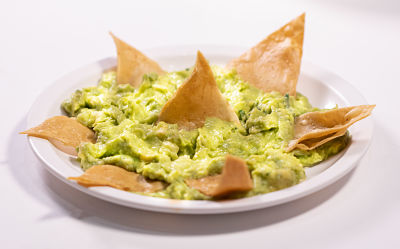 Tortilla de harina gigante con un toque de guacamole, frijoles charros, pimientos, longaniza y exquisito queso gouda
