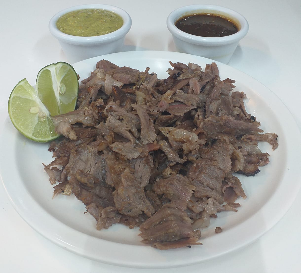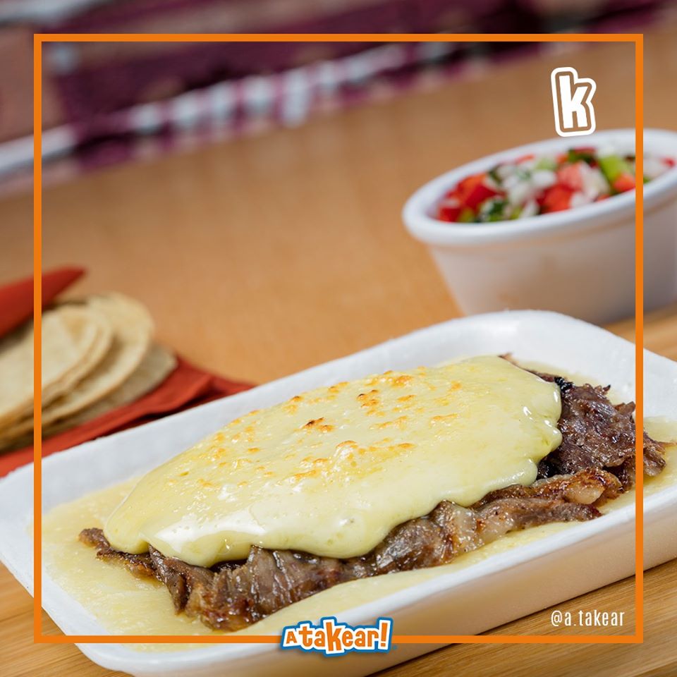 Delicioso chicharrón de queso relleno con tu carne preferida sobre una tortilla de harina