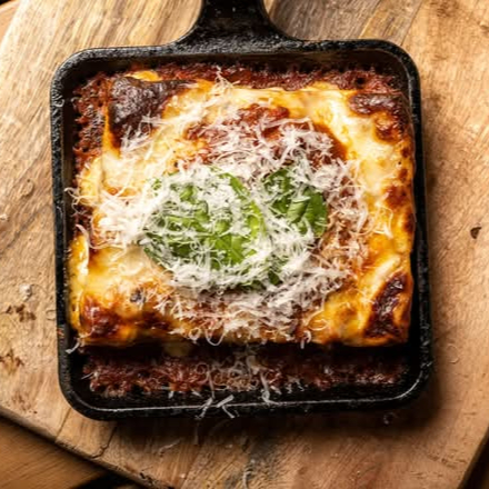 Jugosa lasaña de tomate, con salsa boloñesa casera y carne molida.