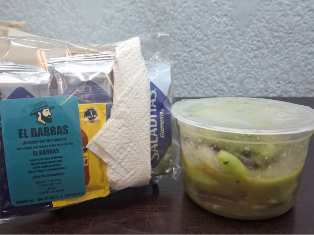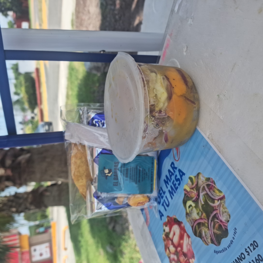 Camarón crudo, pepino, cebolla morada , cubos de mango y deliciosa salsa de mango habanero
