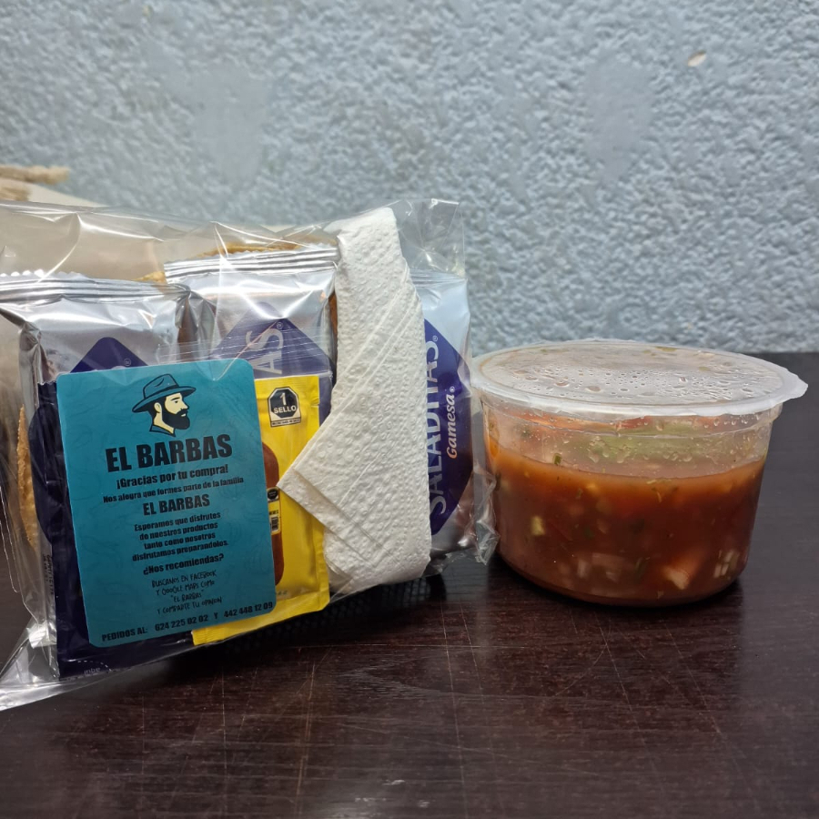 Camarón cocido, pico de gallo (jitomate, cebolla, pepino,cilantro), aguacate y la clásica salsa coctelera , *este producto no tiene picante