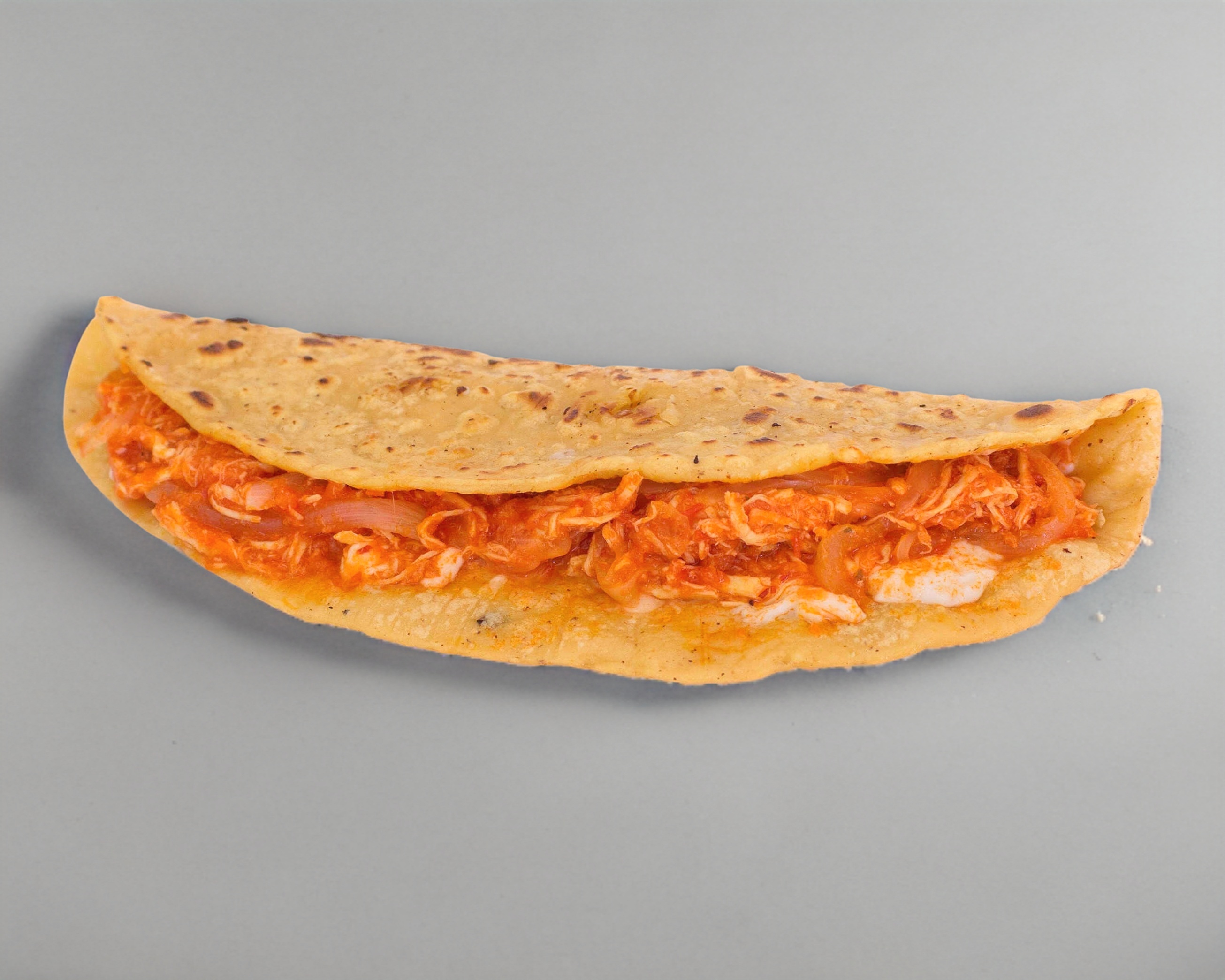 Quesadilla de Tinga de Pollo: 1 porcion personal contiene tortilla de masa , Salsa de la casa (verde o roja), tinga de pollo ( con nuestro excelente sazón)