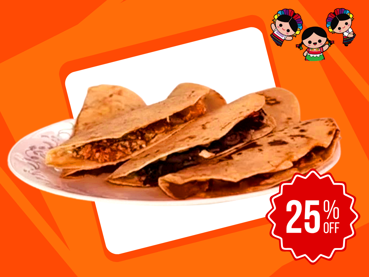 Guisado y queso Oaxaca, (se sirve con lechuga, queso y crema).