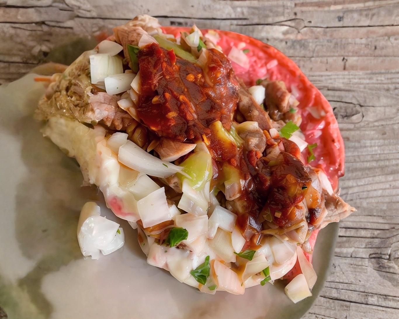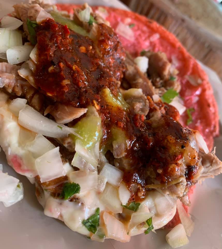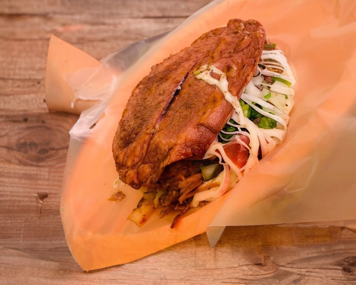 taco pisado de barbacoa de res con verdura
