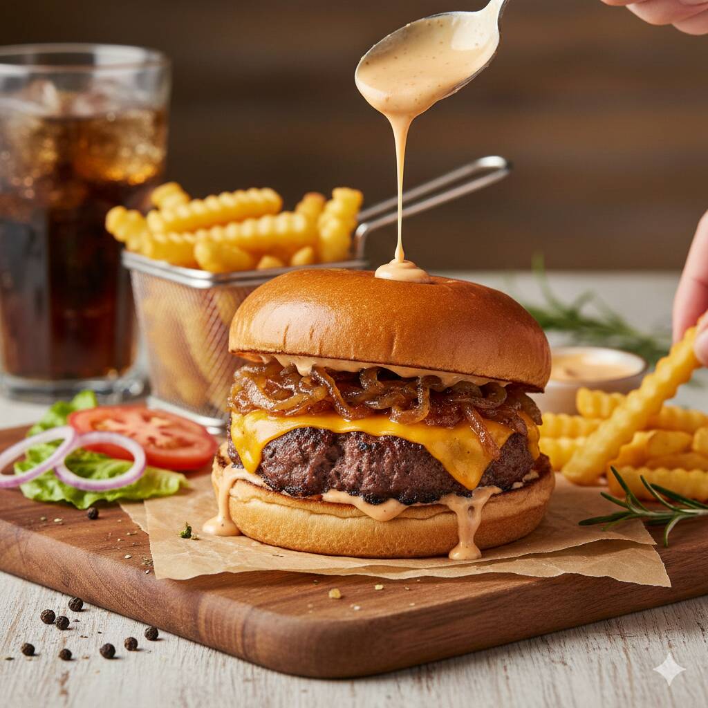 Carne angus 100%,pan brioche,queso cheddar,cebolla caramelizada y salsa especial bestbuns