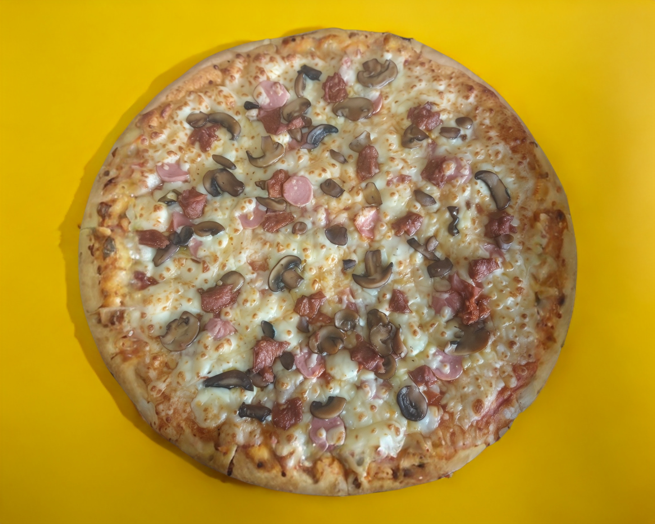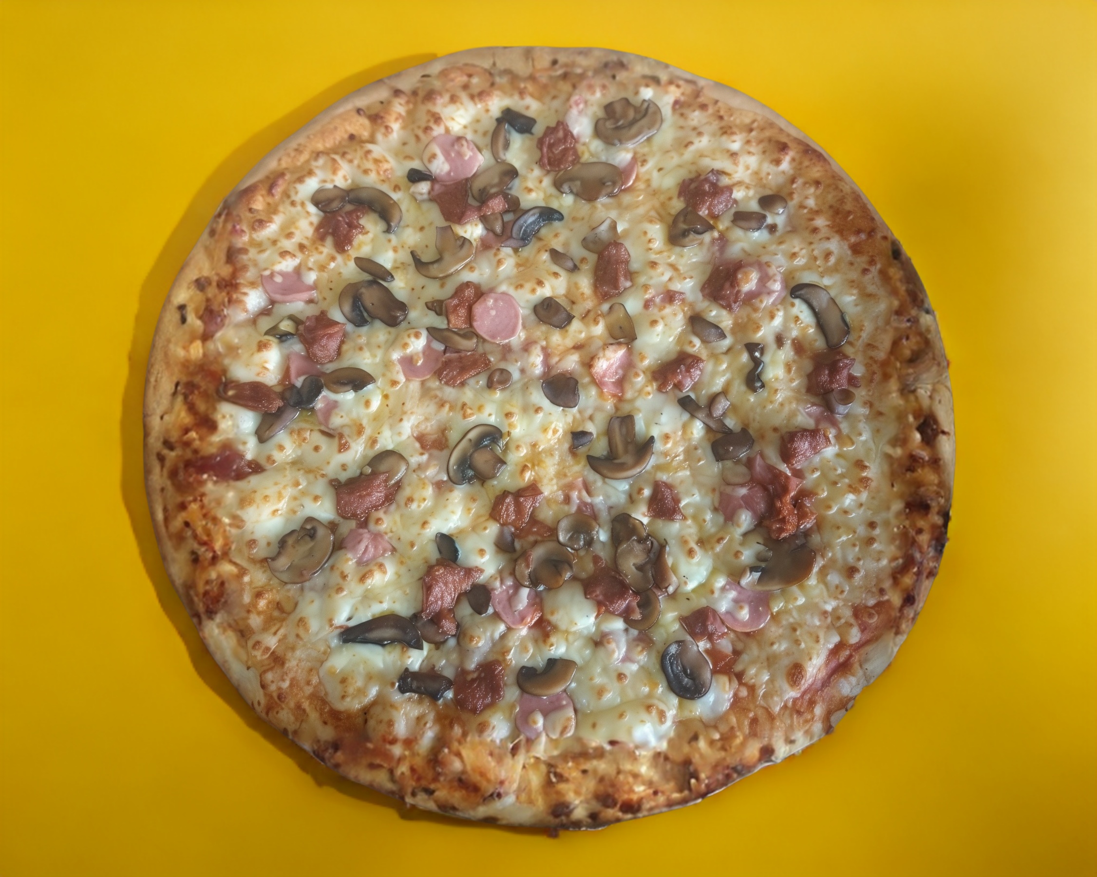 pizza de 33cm de diametro bañada en salsa de la casa con jamon, salami, salchicha, champiñon y chilorio gratinada en 3 quesos