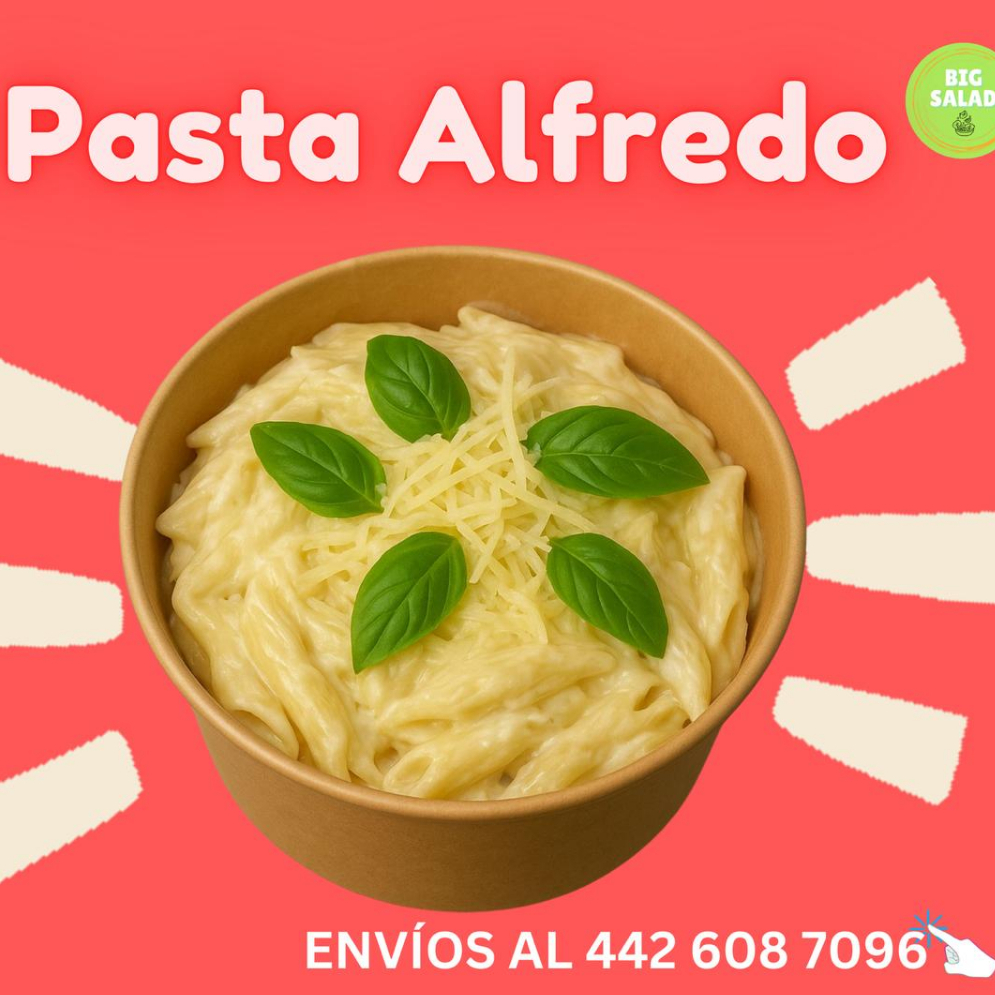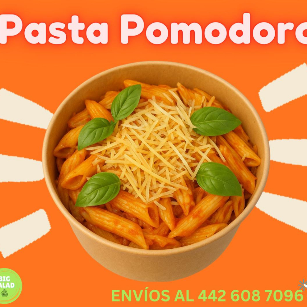 Pasta bañada en salsa artesanal de jitomate, albahaca, ajo y aceite de olivo.