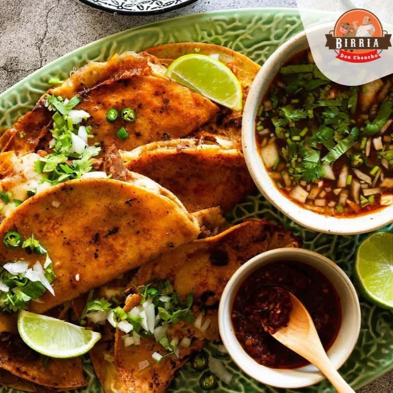 Un kilo de birria de res cocida a fuego lento y incluye 1.5 L de consomé para toda la familia.