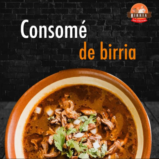 Caldo de birria puro y concentrado (8 oz), ideal para acompañar tus tacos o beber solo.
