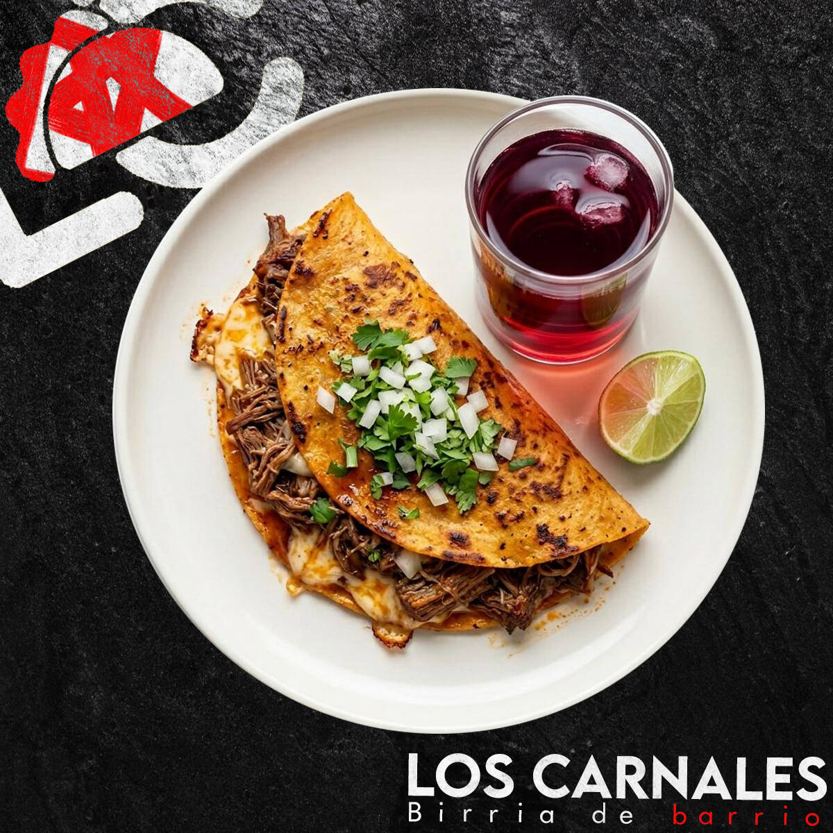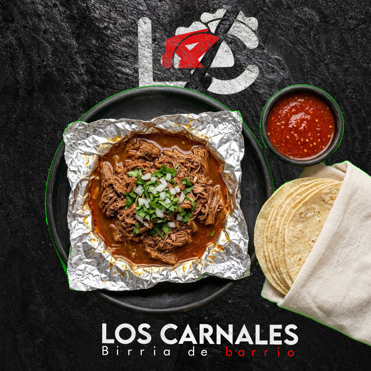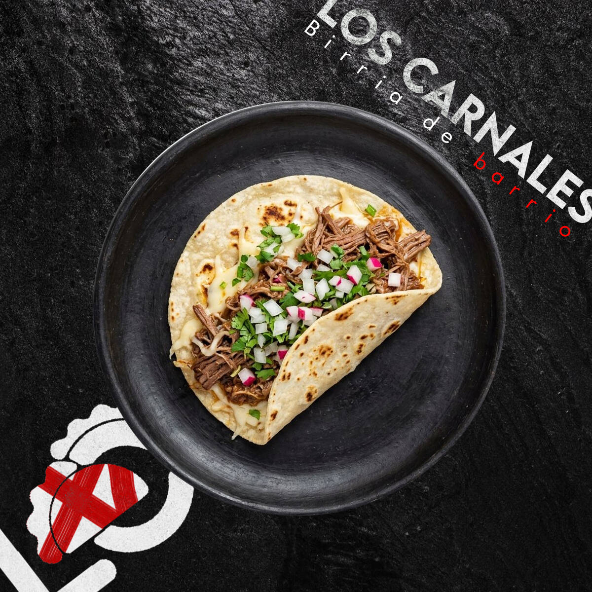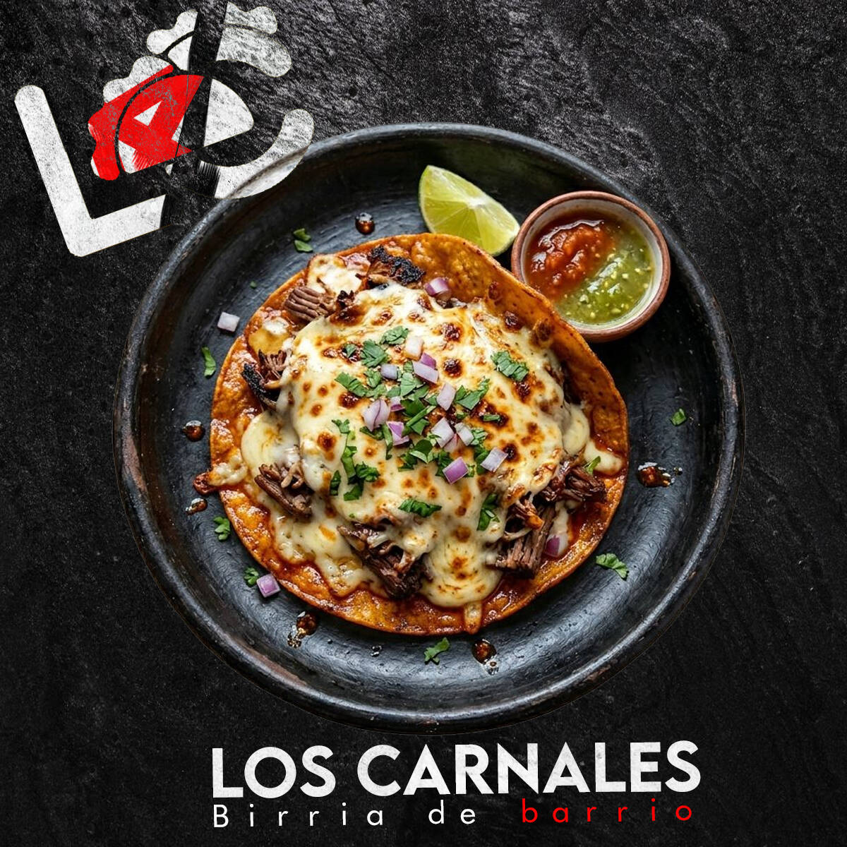Algo extraño apareció en la cocina de Los Carnales… Tortilla de harina extra grande rellena de birria jugosa, queso derretido, lechuga fresca, zanahoria rallada, jitomate, cebolla, cilantro y aderezo César. Enrollado estilo shawarma y dorado a la plancha. Algunos dicen que no es un shawarma… es una anomalía del sabor. 🌯🔥