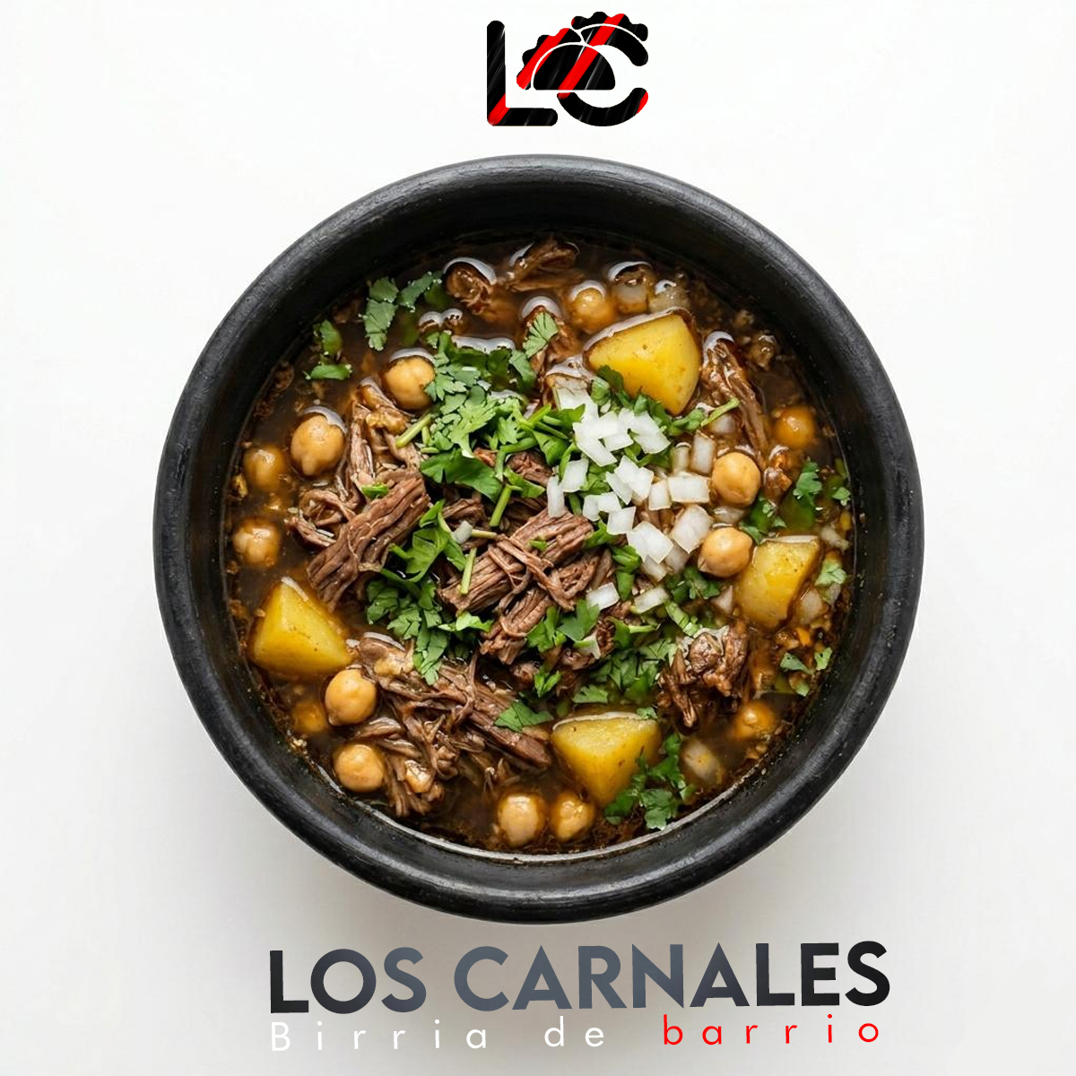 Caldito calientito con el sabor auténtico de nuestra birria, acompañado de verdura fresca, garbanzos y papitas a tu elección, más su salsita especial.