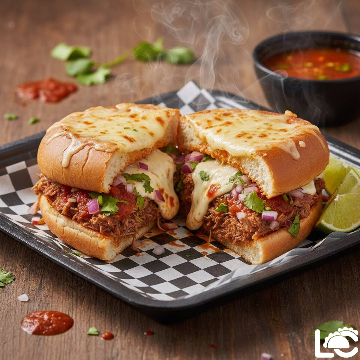torta de birria con queso