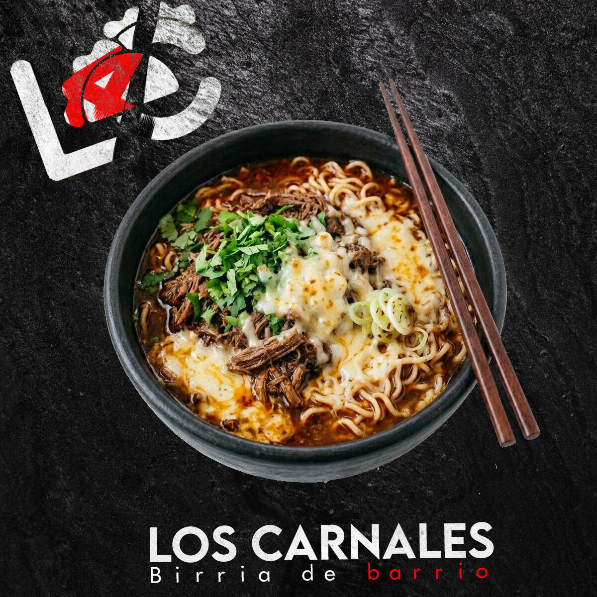 Nuestro ramen estrella con carne jugosa de birria, fideos en su punto, verdura fresca, garbanzos y papitas al gusto, más nuestra salsita especial que lo hace único. (base de sopa ramen noodle soup instantánea)